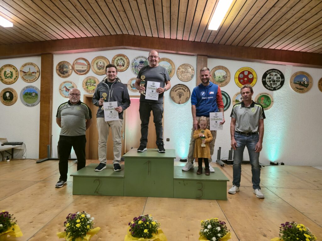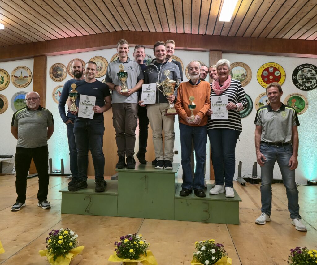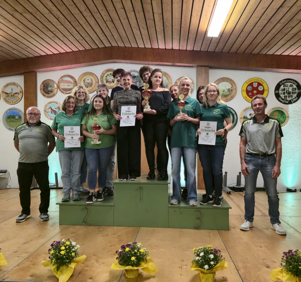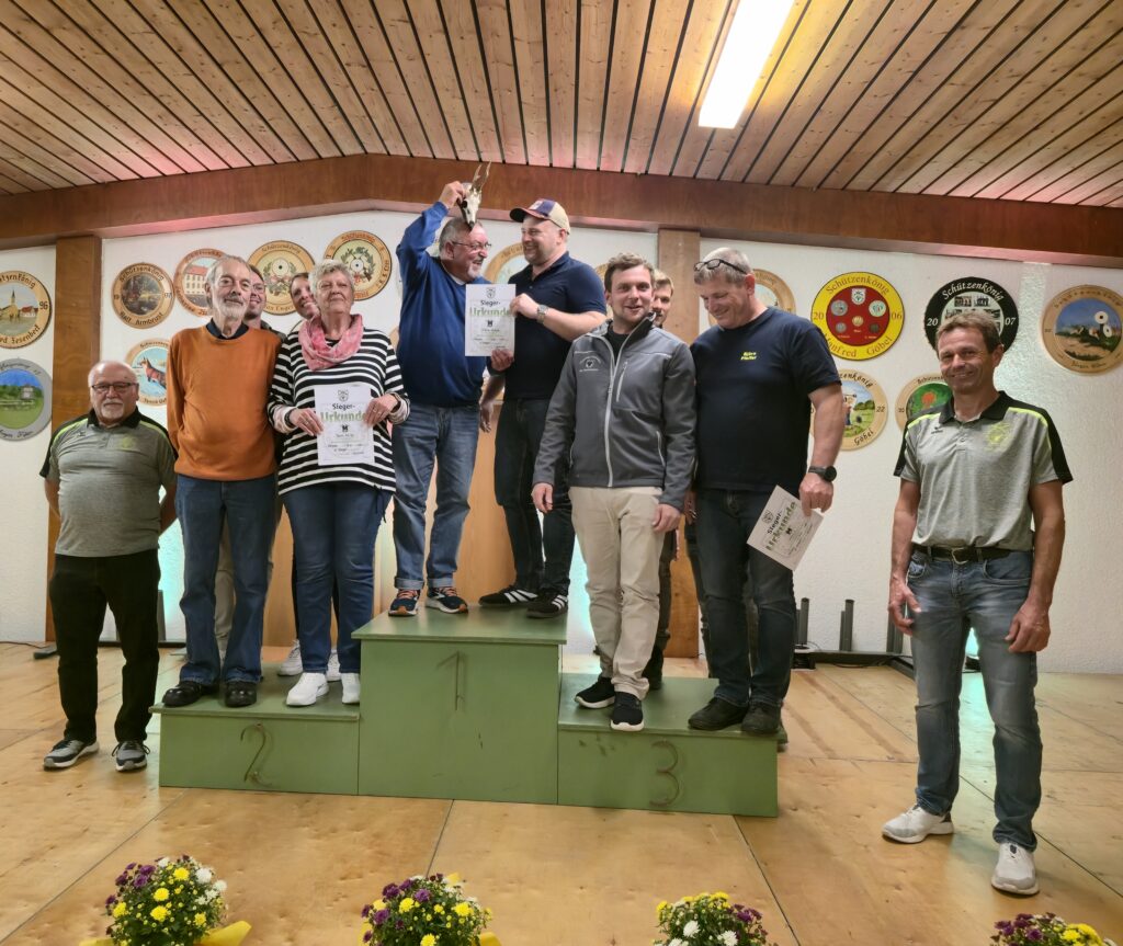 Am Sonntag, den 21. September wurde die 44. traditionelle Stadtmeisterschaft ausgetragen, zu dem sich die Besucher zum Mittagstisch und Wettkampf ins Schützenhaus einfanden. Für die jüngeren Gäste stand der Lichtgewehranhänger bereit, den in diesem Jahr 7 Kinder nutzten. Deutlich größer war die Beteiligung bei den Erwachsenen: 39 Mannschaften nahmen teil, darunter 11 reine Damenteams. Die Anzahl der Schützinnen stieg auf 59 von insgesamt 156 Teilnehmern. Seit letztem Jahr wird die Meisterschaft auf elektronischen Schießanlagen durchgeführt – eine Umstellung, bei dem der ein oder andere noch die gewohnten „Scheiben“ suchte. Das Auswertungsteam des KKS hingegen suchte nach klaren Siegern, was unmöglich war, denn die Ergebnisse lagen bei den Herren wie Damen auffallend dicht beieinander. Das Resultat: 11 Herren mussten ins Stechschießen, während es bei den Damen zu einem kleineren Ausschießen zwischen zwei punktgleichen Schützinnen kam. Am Ende setzte sich Kamil Trojan unter allen, die 47 Ringe erzielten, durch und wurde Dritter. Den zweiten Platz belegte sein Mannschaftskamerad Fabian Zorn, ebenfalls von der Freiwilligen Feuerwehr, der 48 Ringe erzielte, im Stechschießen jedoch Roland Friedrich vom TSV Clubhaus Ü50 den Sieg überlassen musste. Bei den Damen konnte sich Romy Sinn im zweiten Stechen gegen ihre Teamkollegin von den Flintenmamas behaupten und den zweiten Platz sichern. Mit ebenfalls 48 Ringen folgte Jenny Tesch auf Platz drei. Für die Siegerin gab es besonderen Applaus: mit perfekten 50 Ringen war Selina Manke vom TC Grün-Weiß Kraichtal unangefochten an der Spitze und erzielte damit noch dazu das höchste Ergebnis in den vergangenen Jahren. Zusätzlich durften sich die Erstplatzierten über einen Essensgutschein freuen, gestiftet von Tobias Borho im Namen der Stadt Kraichtal. Spannend war es auch beim Lichtgewehrschießen. Mit 86 Ringen erreichte Jannis Claassen den dritten Platz, dicht gefolgt von Josephin Oßfeld, die mit 87 Ringen Zweite wurde. Den Sieg sicherte sich Klara Trojan mit 89 Ringen. In der Mannschaftswertung war die Freiwillige Feuerwehr Oö stark vertreten und dominierte die Top 5. Auf das Podest schaffte es jedoch nur die erste Mannschaft, die mit 183 Ringen den Sieg holte und den Wanderpokal für das höchste Ergebnis des Wettbewerbs zurückgewann. Den zweiten Platz belegte Witzenmann-Speck mit 181 Ringen, gefolgt vom Team Ma.Jo mit 180 Ringen. Nach dem verpassten Podest im letzten Jahr sicherten sich die OWK-Damen diesmal mit 174 Ringen den dritten Platz. Den zweiten Platz belegten die Damen des TC Grün-Weiß Kraichtal mit 176 Ringen, während die Küchenweiber mit 180 Ringen Ihren Sieg erfolgreich verteidigten. Wer den frisch geschossenen Rehbock gewonnen hatte, verkündete Oberschützenmeister Werner Zimmermann. Ein Pokal in Form von Geweihhörner wurde an das Team der Kleinen Kneipe übergeben, die den niedrigsten Mannschaftsteiler von 2.693 Ringen hatten. Der Schwartenmagen, gestiftet von der Metzgerei Deckinger, wurde unter den Einzelschützen mit der niedrigsten Ringzahl verlost, bei dem Monika Israel die Glückliche war. Den Pokal für die meisten Mannschaften erhielt erneut die Freiwillige Feuerwehr Oö, die fünf Mannschaften stellte. Der KKS gratuliert den Preisträgern, bedankt sich bei allen Teilnehmern, Gästen und fleißigen Helfer und freut sich auf ein Wiedersehen bei der nächsten Stadtmeisterschaft.