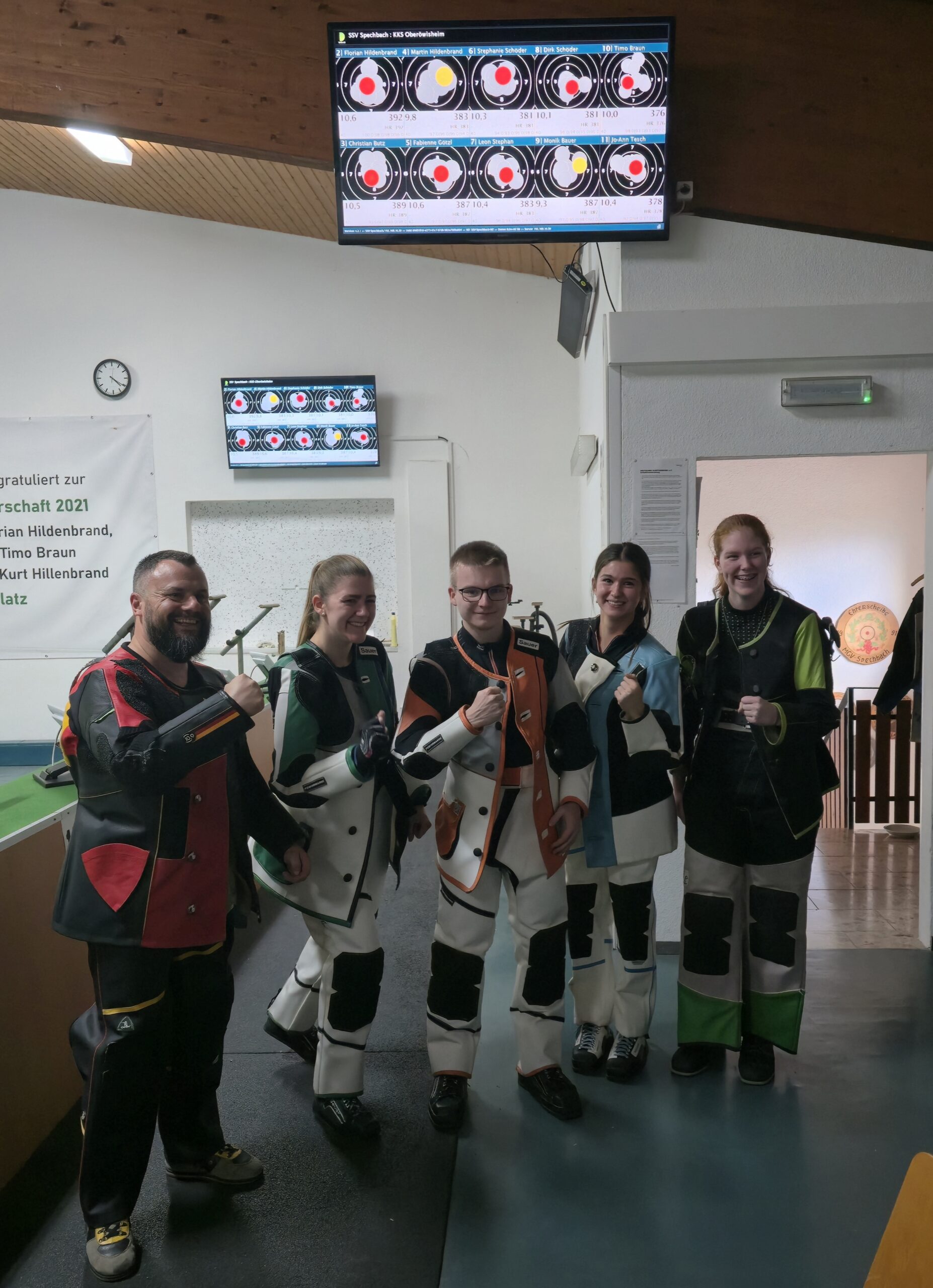 Am Sonntag, den 26. Oktober fand der Oberligaauftakt in Spechbach statt; dort wo bereits der Aufstieg gelang. Zum Auftakt ging es gegen den ebenfalls aufgestiegenen TV Epfenbach – ein Duell auf Augenhöhe, wie sich schnell herausstellte. Der Wettkampf verlief äußerst spannend, und bis zum Ende blieb unklar, wer den Sieg für sich entscheiden würde. Auf mehreren Positionen wechselte die Führung ständig – mal lagen die KKS-Schützen vorne, dann wieder zurück. Monik Bauer schoss am gleichmäßigsten, konnte ihrem Gegner aber bis zur letzten Serie nicht entscheidend näherkommen. Trotz guten 383 Ringen fehlten ihr am Ende nur drei Ringe zum Punktgewinn, der schließlich an Epfenbach ging. Jo-Ann Tesch überraschte auf Position fünf, brachte ihren Gegner sichtlich unter Druck und baute ihren Vorsprung Schritt für Schritt aus. Mit 379 Ringen war der erste sichere Punkt gewonnen. Leon Stephan hatte ab der zweiten Serie Schwierigkeiten, sodass sein Gegner uneinholbar wurde. Die Hoffnungen ruhten nun auf den vorderen Positionen. Christian Butz musste sich zunächst nach einem holprigen Start und der 100er Serie seines Gegners zurückkämpfen, zeigte dann aber starke Nerven. In der entscheidenden letzten Serie setzte er sich durch und sicherte mit 389 zu 385 Ringen den Punkt für den KKS. Die Entscheidung lag nun bei Fabienne Götzl, die es sich selbst schwer machte. Bis zum letzten Schuss in den finalen Minuten war es offen. Mit 383 Ringen ging der Punkt schließlich an Oberöwisheim zum knappen 3:2 Sieg. Damit war der erste wichtige Oberligasieg perfekt. Nach der Mittagspause folgte der zweite Wettkampf gegen die Gastgeber des SSV Spechbach. Nach dem ersten Durchgang der Gastgeber war klar, dass ein schwieriger Wettkampf bevorstand. Die Spannung war spürbar – nicht nur bei den Schützen, sondern auch bei den Fans: ein Duell zwischen dem Spechbacher Stammtisch und dem großen KKS-Fanclub. Was Leon Stephan und Monik Bauer im ersten Duell nicht gelang, klappte diesmal: sie gingen in Führung. Christian Butz hatte von Beginn an gegen die 100er Serie seines Gegners zu kämpfen, während Fabienne Götzl ein spannendes Kopf-an-Kopf-Rennen lieferte. Höchste Konzentration und Präzision waren nun gefragt. Jo-Ann Tesch konnte Ihr Duell clever drehen. Nach einem anfänglichen Rückstand holte sie nach und nach auf und setzte Ihren Gegner mit einem schnelleren Finish unter Druck, dem er nicht standhalten konnte. Am Ende gewann Jo-Ann Tesch mit zwei Ringen. Bei Leon Stephan zeichnete sich immer deutlicher der zweite Punktgewinn ab, welcher er mit 383 Ringen perfekt machte. Christian Butz hingegen konnte dieses Mal sein Duell nicht mehr drehen. Fabienne Götzl blieb konsequent, hielt Ihrem Gegner stand und baute langsam einen Vorsprung aus. Mit 387 Ringen holte sie den dritten Punkt, während Monik Bauer mit demselben Ergebnis noch einen draufsetzte. Mit diesen starken Einzelleistungen gelang ein überzeugender 4:1-Sieg. Damit übernimmt der KKS Oberöwisheim die Tabellenführung in der Oberliga vor dem SSV Kronau 3 und dem KKS Ispringen.