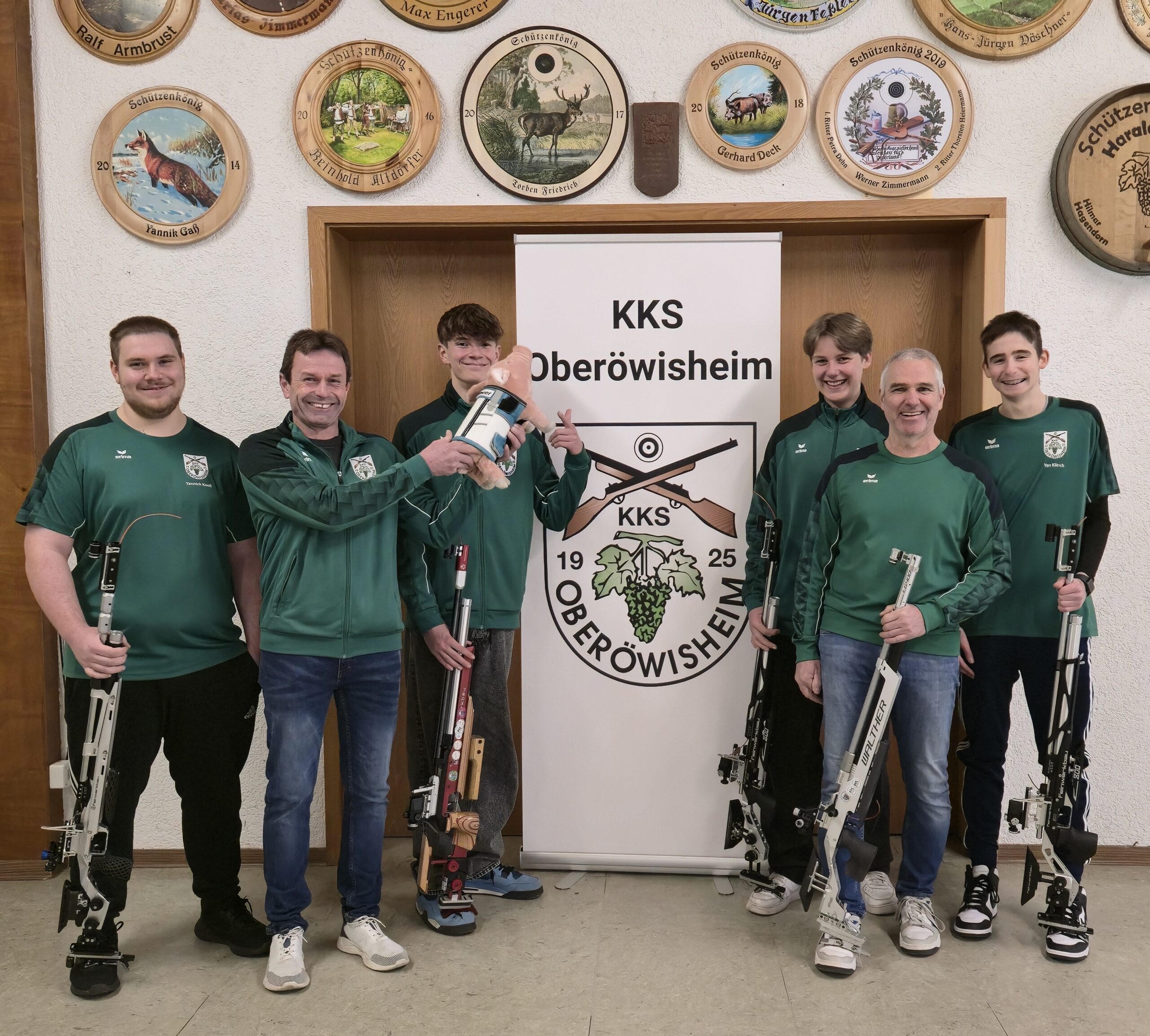 Mit dem Start ins Jahr 2026 standen für die Luftgewehrmannschaften richtungsweisende Entscheidungen in der Liga an. Die zweite LG-Mannschaft bestritt am Freitag, dem 16. Januar, ihren letzten Heimwettkampf der Saison und traf dabei auf den KKS Bauerbach. Bereits das Hinrundenduell im November hatte gezeigt, wie eng es zwischen beiden Teams zuging: zwei Stechen hatten damals über Sieg oder Niederlage entschieden. Entsprechend groß war die Erwartung und der Wettkampf hielt, was er versprach. Über weite Strecken blieb das Ergebnis völlig offen, sodass bis kurz vor Wettkampfende die Partie eng blieb. Jeder einzelne Schuss, sowohl der eigenen Schützen als auch der Gegner, konnte die Situation jederzeit neu verändern. Allen voran zeigte sich dieses Mal jedoch Yan Klitsch völlig unbeeindruckt. Er blieb konsequent bei seinem Schießen und staunte am Ende selbst über seine starke Leistung. Mit strahlendem Gesicht und einem breiten Grinsen beendete er den Wettkampf mit einem neuen persönlichen Bestwert von 374 Ringen. Aus der zunächst unsicheren 3:2-Führung entwickelte sich im weiteren Verlauf zunehmend ein klares 4:1. Der letzte noch offene Punkt lag bei Friso Fesenbeck, der sich mit seinem Gegner ein Duell auf Augenhöhe lieferte und Serie für Serie mithielt. Zuvor hatten Yannick Kooß und Leif Ohder mit konstanten Leistungen von 380 und 369 Ringen ihre Punkte souverän gesichert. Auch Lee Berger zeigte Großes: nach einem schwachen Beginn kämpfte er sich eindrucksvoll zurück und sicherte sich seinen Punkt mit 363 Ringen. Den letzten Punkt musste der KKS schließlich an Bauerbach abgeben, da Friso Fesenbeck trotz starker 376 Ringe sein Duell mit nur zwei Ringen Rückstand knapp verlor. Ungeachtet des verlorenen Einzelpunkts konnte die Mannschaft mit dem 4:1 Sieg den Meistertitel in der Kreisoberliga perfekt machen. Mit sechs Siegen aus sechs Wettkämpfen und einer 100% Erfolgsquote in allen Stechen bewies die zweite Mannschaft ihre besondere und mehr Nervenstärke als die erste Mannschaft in der Oberliga. Über die gesamte Saison hinweg überzeugte die Mannschaft mit Konstanz, Teamgeist und Nervenstärke. Besonders die dominanten Auftritte gegen Bretten und Odenheim sowie der dramatische Auswärtssieg in Bauerbach, bei dem wichtige Punkte im Stechen entschieden wurden, unterstrichen die Klasse des Teams. Ein zentraler Erfolgsfaktor war die gelungene Mischung aus Erfahrung und Nachwuchs. Mit Leif Ohder, Lee Berger, Yan Klitsch und Luca Zimmermann standen gleich vier Jugendschützen im Aufgebot, die mit Ruhe, stabilen Leistungen und starken Ringzahlen zu wichtigen Leistungsträgern wurden. Ihr Einsatz ist ein starkes Zeichen für die hervorragende Jugendarbeit des Vereins. Im Hintergrund unterstützte Altersschütze und Ligaleiter Jürgen Göbel die Mannschaft mit seiner Erfahrung. Besonderer Dank gilt zudem Yannick Kooß und Friso Fesenbeck für ihren zusätzlichen Einsatz als Ersatzschützen der ersten Mannschaft – ein Beispiel für den starken Zusammenhalt im Verein. Der Meistertitel ist mehr als ein sportlicher Erfolg: Er steht für Vereinsstärke, erfolgreiche Nachwuchsarbeit und ein harmonisches Miteinander von Erfahrung und Jugend. DAS WIR GEWINNT!